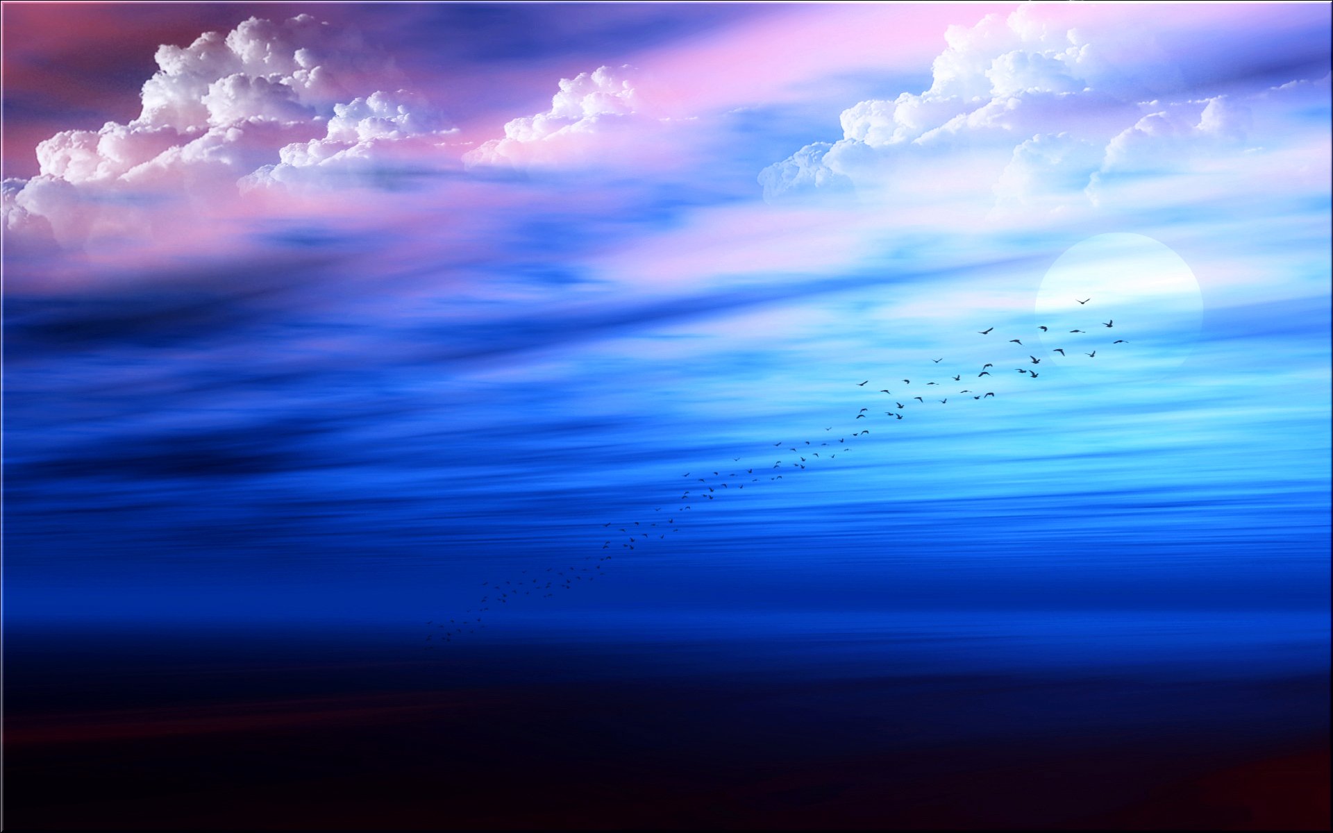 Uno stormo di uccelli su uno sfondo di luna e nuvole
