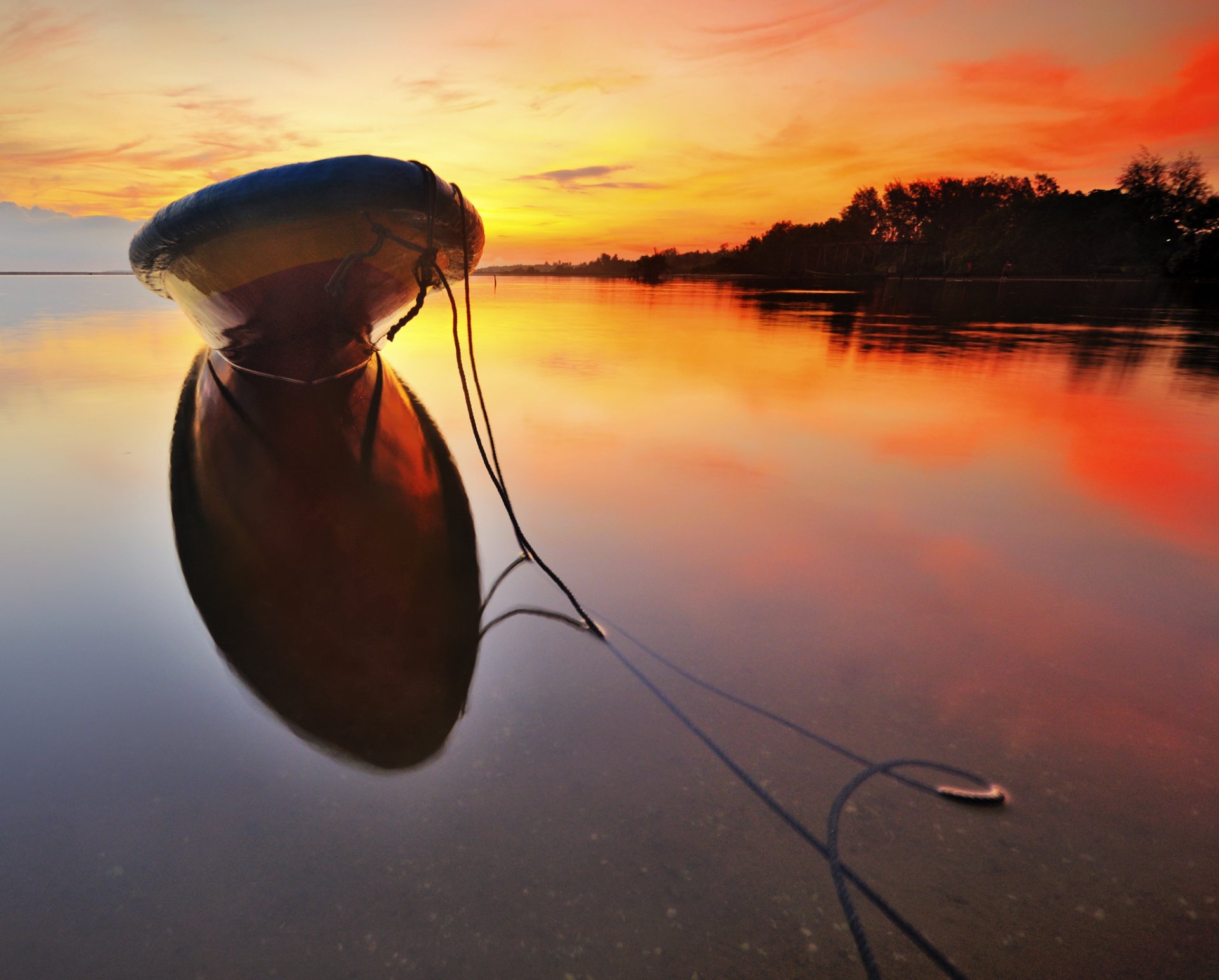 Barca solitaria nel mezzo di uno specchio d'acqua