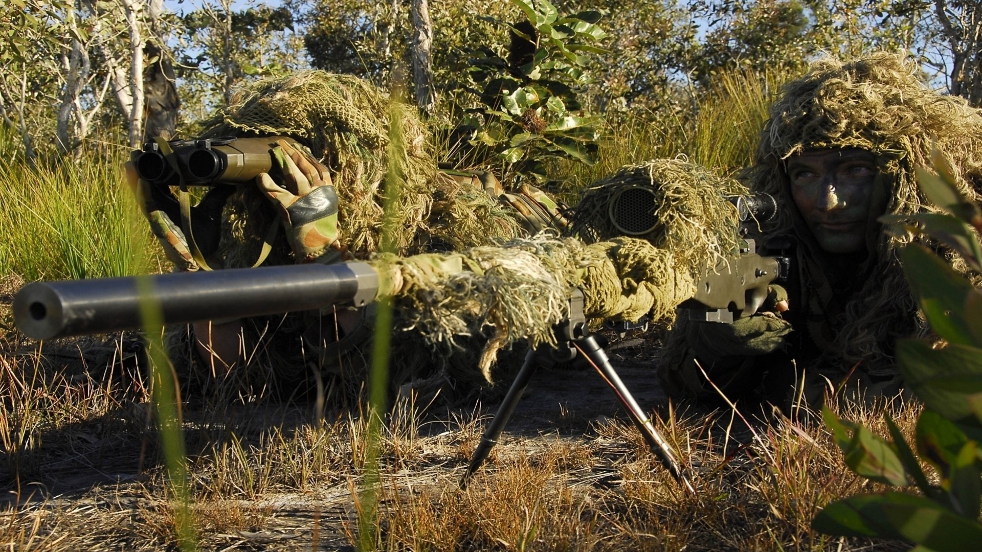 Un militare in agguato guarda nel mirino ottico della sua armaUn militare in agguato guarda nel mirino ottico della sua arma