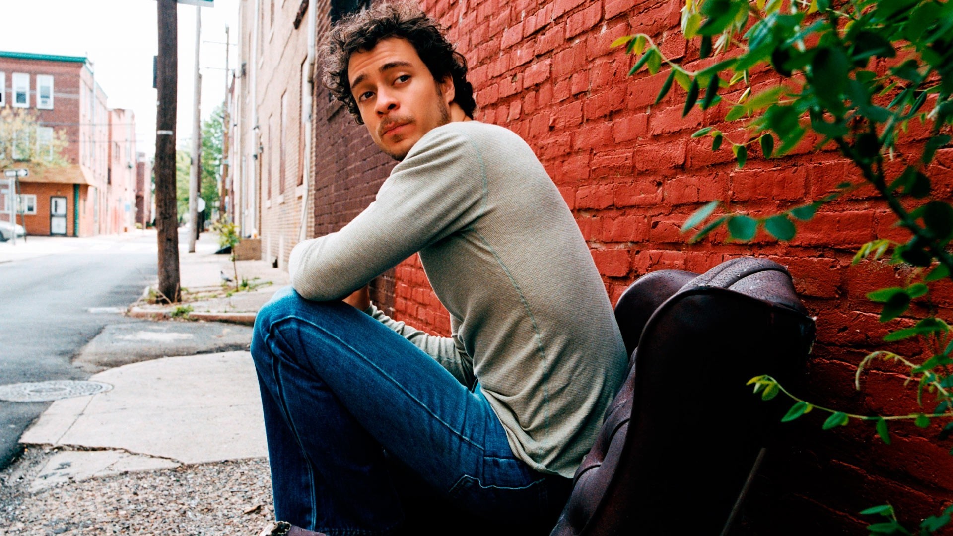 Henry cavill su una sedia su uno sfondo di tende rosse