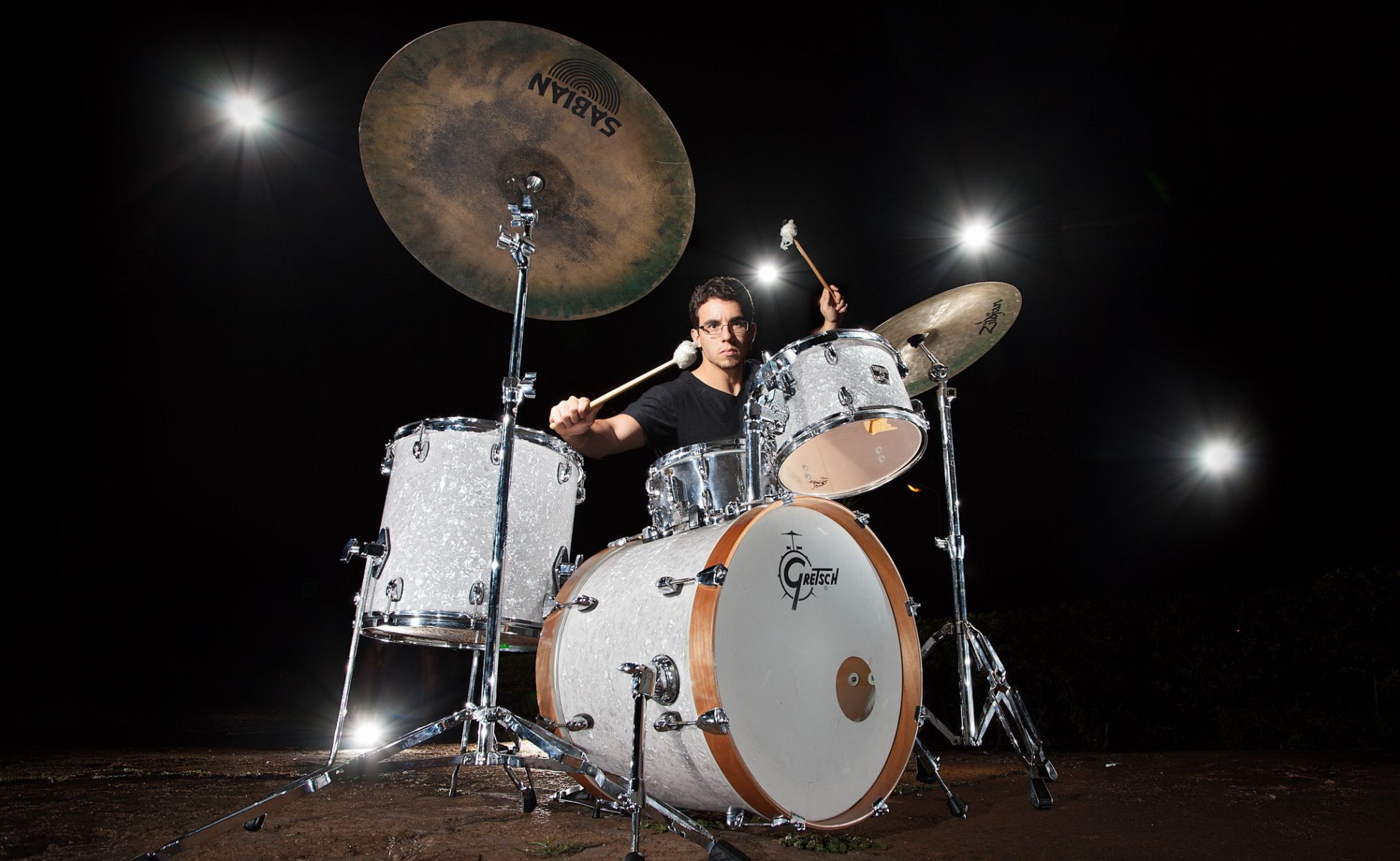 Sullo sfondo di un paesaggio autunnale, un ragazzo suona il piano
