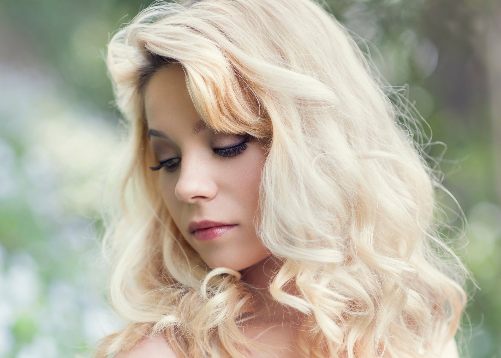 Ritratto di una bella bionda con uno sguardo verso il bassoRitratto di una bella bionda con uno sguardo verso il basso