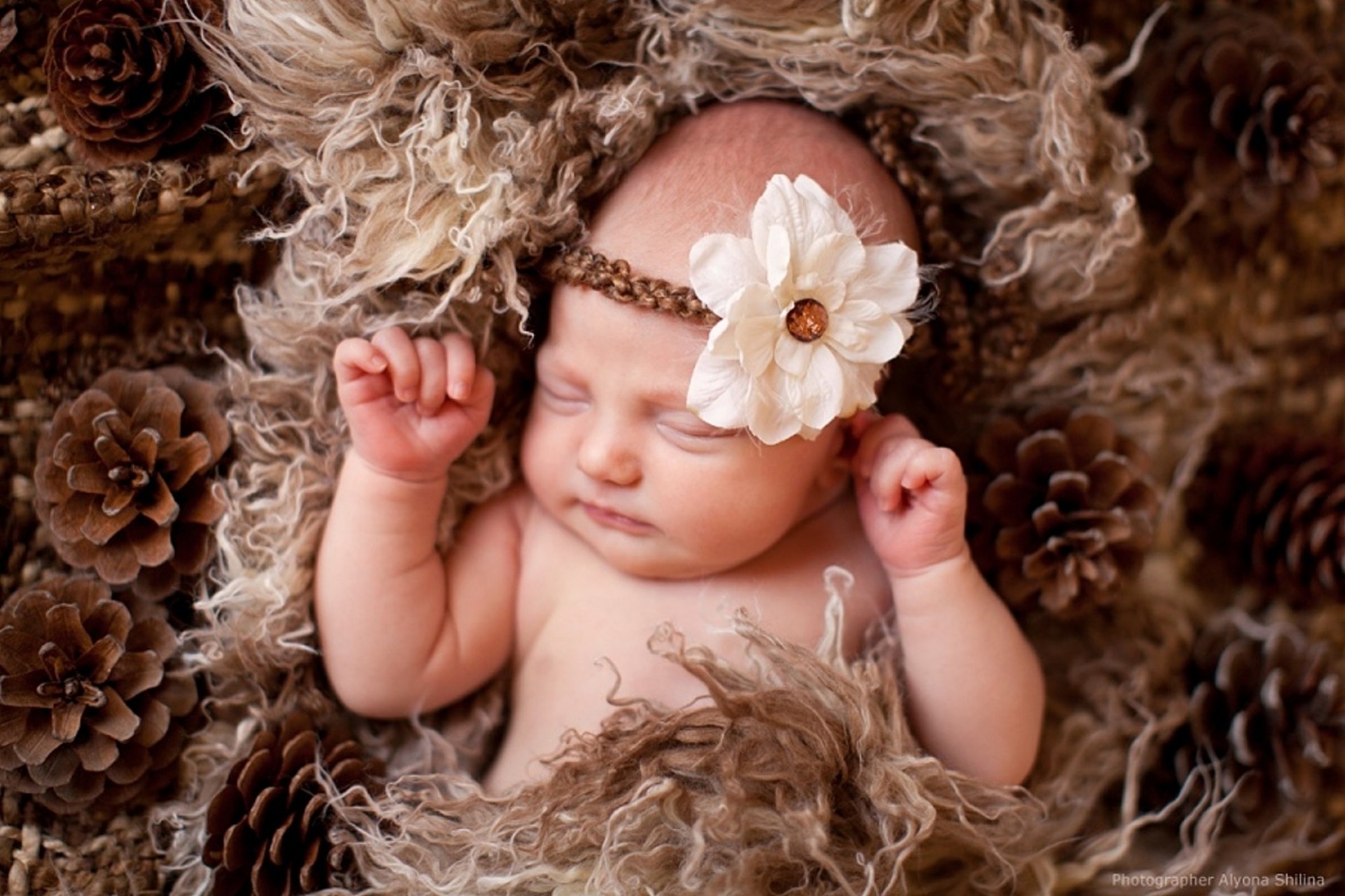 Bambino che dorme in coni servizio fotografico
