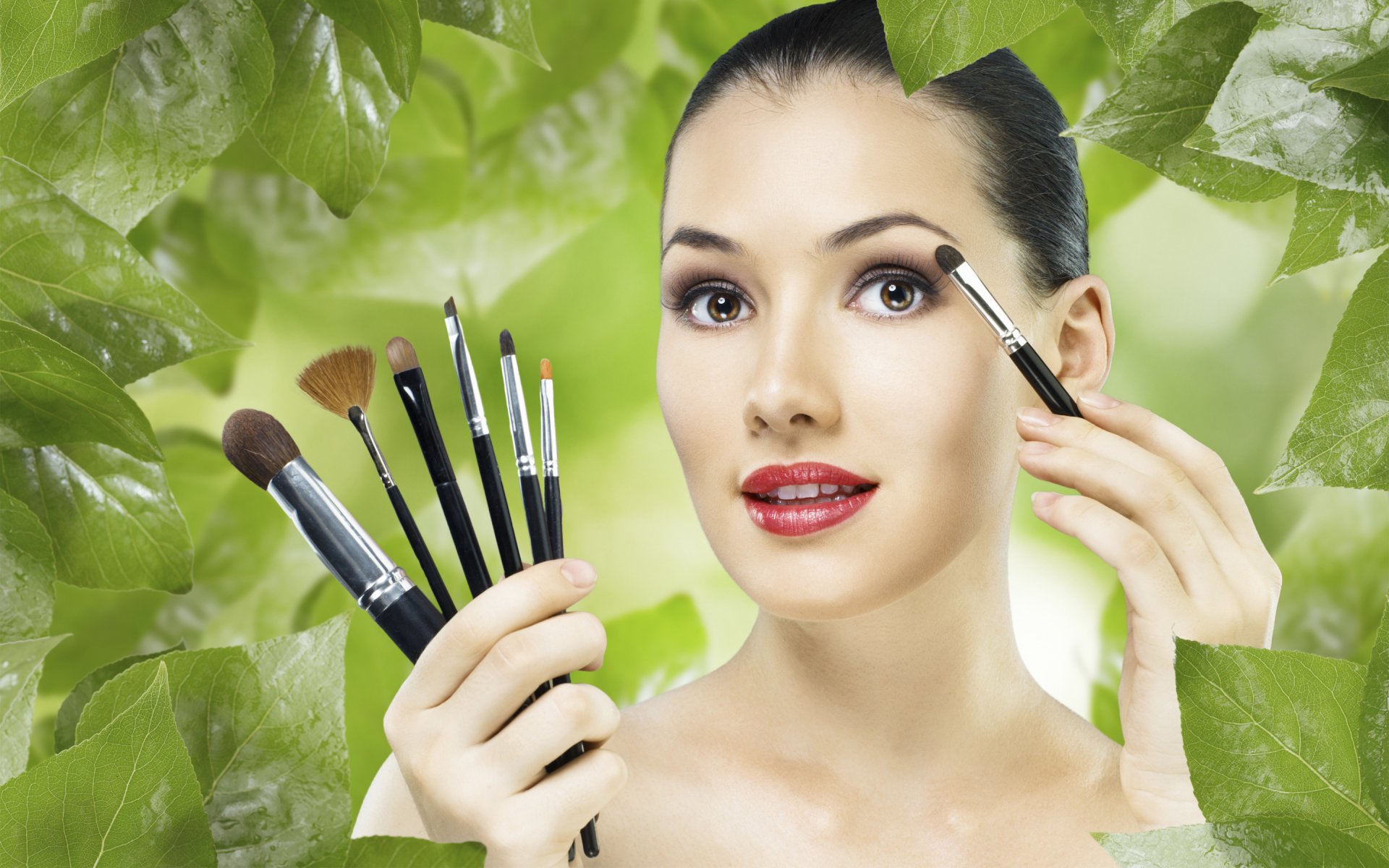 Ritratto di ragazza con pennello e trucco
