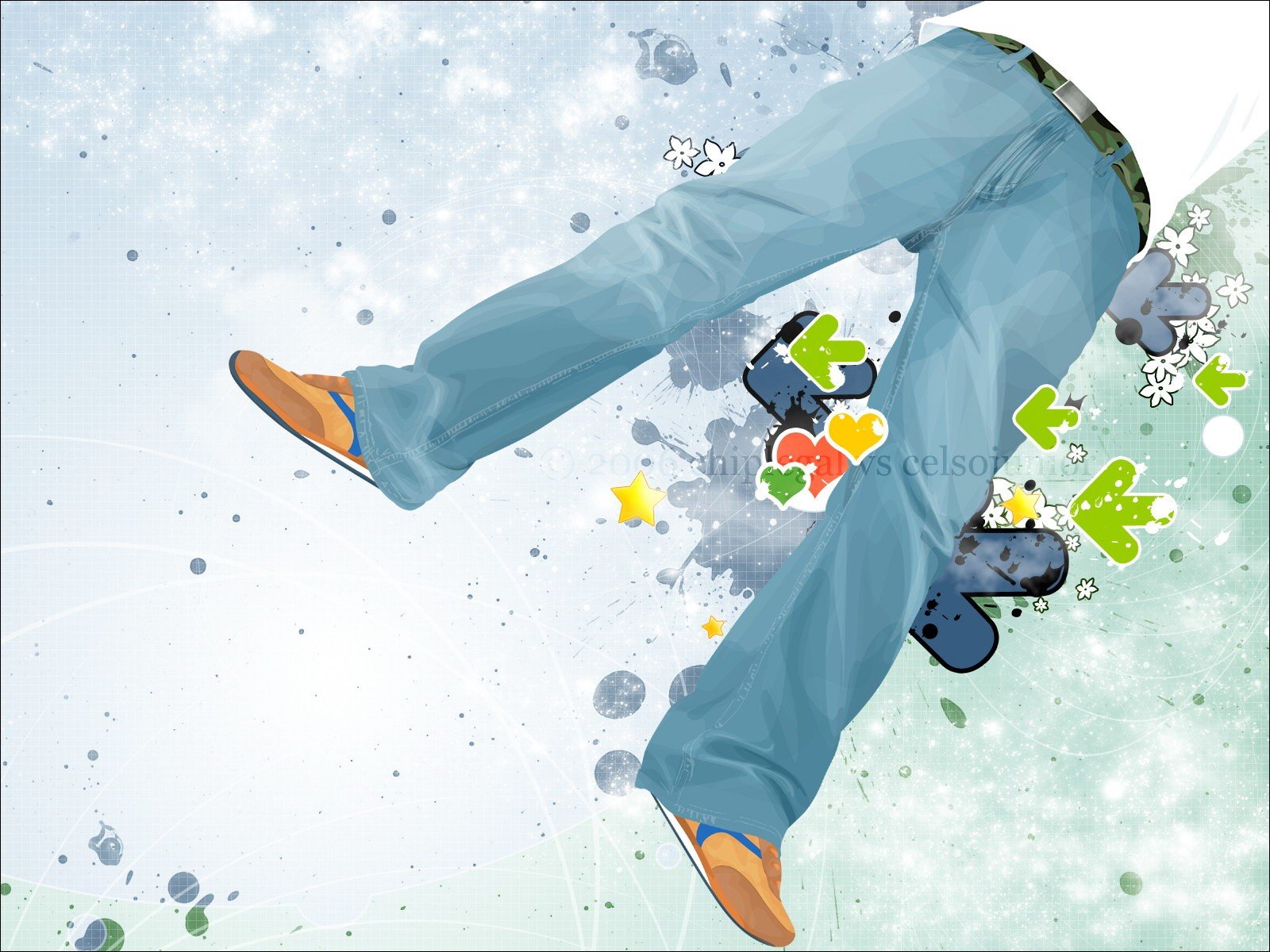 L'uomo con i jeans blu si trova con le frecce e i vettoriL'uomo con i jeans blu si trova con le frecce e i vettori