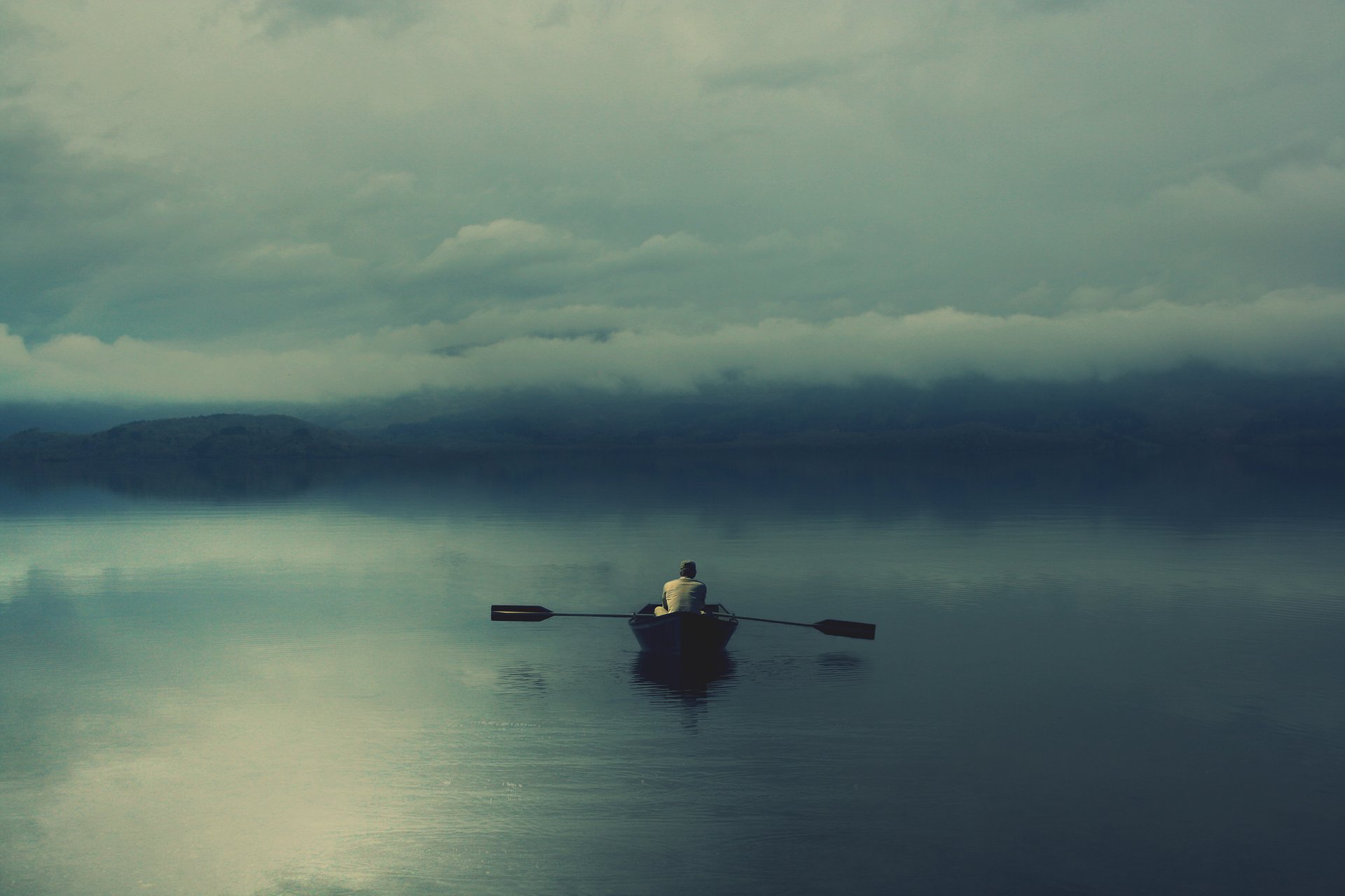 Paesaggio notturno con albero solitario nella nebbiaPaesaggio notturno con albero solitario nella nebbia